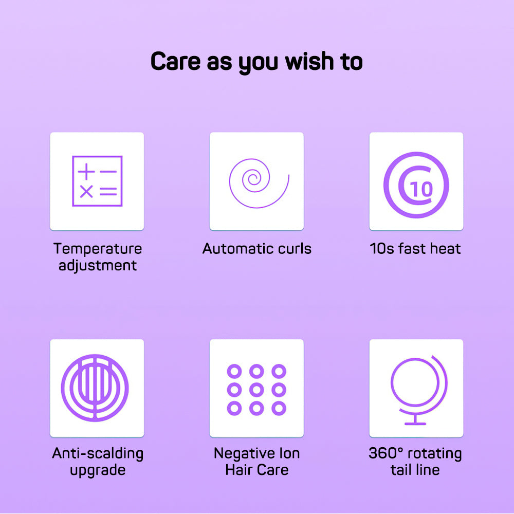 With adjustable temperature settings (170°C, 190°C, 210°C, 230°C), it caters to all hair types, offering a personalized styling experience. The automatic rotating barrel effortlessly wraps and curls your hair, saving time while delivering consistent, salon-quality results.